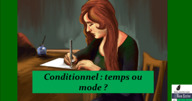 Conditionnel : temps ou mode ? Le conditionnel a, la plupart du temps, été classé dans la catégorie « mode ». Pourtant, pendant plusieurs années, on a eu plutôt tendance à le considérer comme un temps de l’indicatif. Les raisons sont :– Le conditionnel présent se construit à partir de temps de l’indicatif (radical du … Lire la suite de Conditionnel : temps ou mode ?